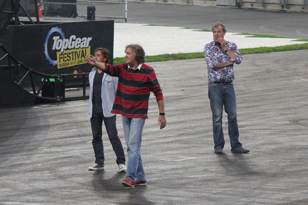 At about 3:30 the street circuit started. We didn’t get a seat to watch it so we had to stand behind the fence. This was the time where we first met the Top Gear presenters, James May, Richard Hammond and Jeremy Clarkson. Then came the Stig. A bunch of cars went by, even the Stig drove past, was awesome.  I love how they made the circuit South African. They had a taxi do a trick where it drove on   2 wheels.